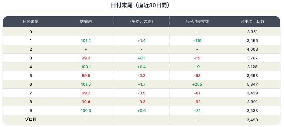 これをみると圧倒的に末尾6日が強いことが分かります!(回転数を見ても歴然ですよね)