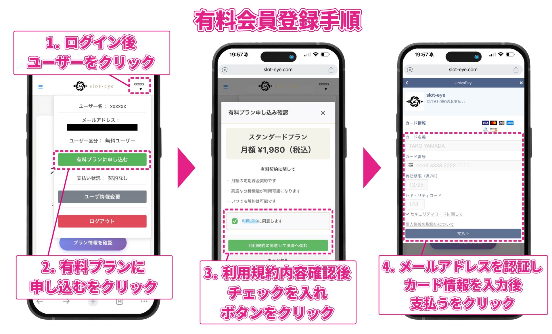 無料会員登録後、以下の手順で有料会員登録を行ってください