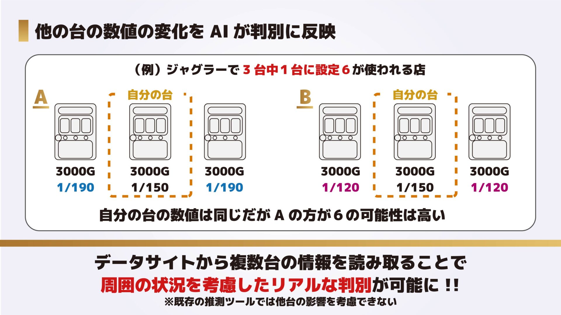 - しない:自分の台の数値のみで判別(通常の設定判別)