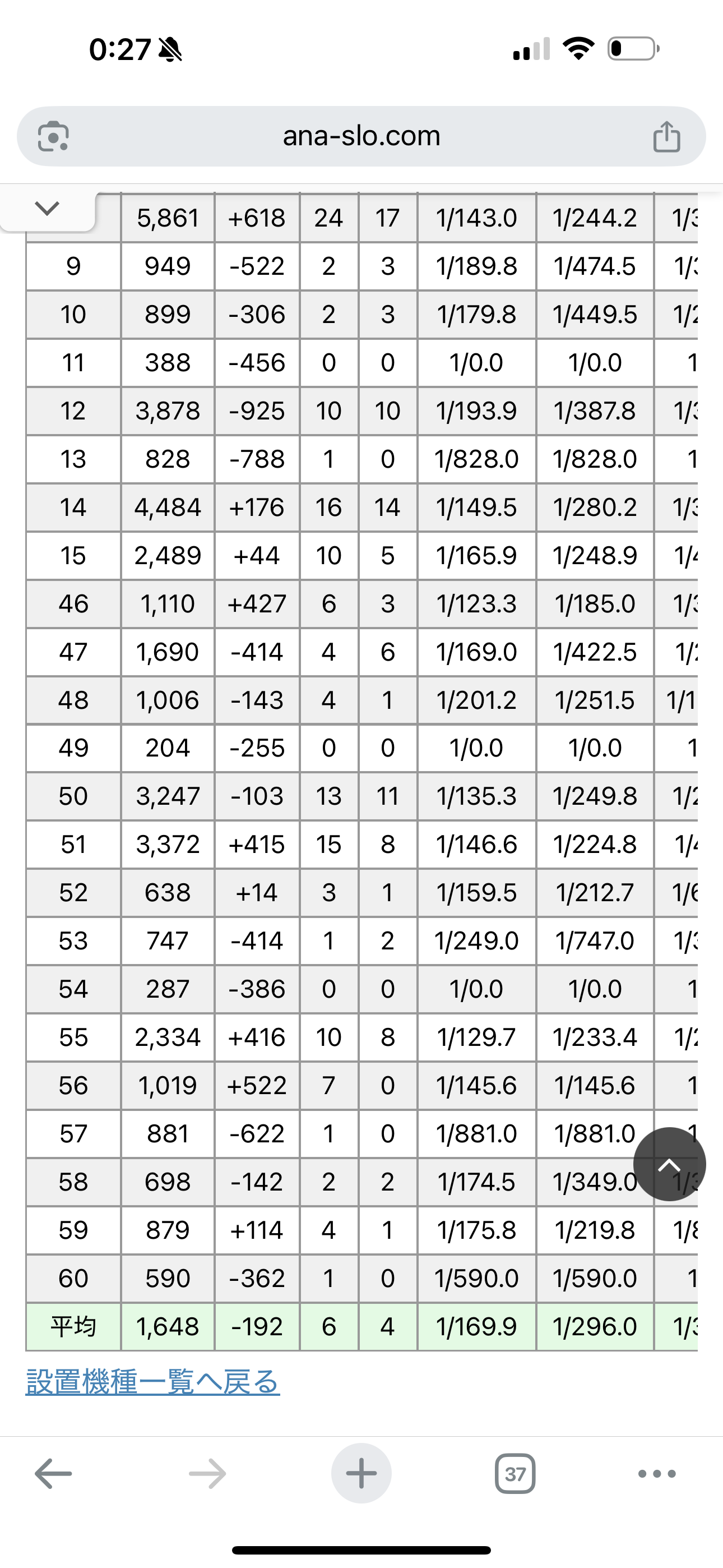 - 平均ゲーム数:全台平均の回転数