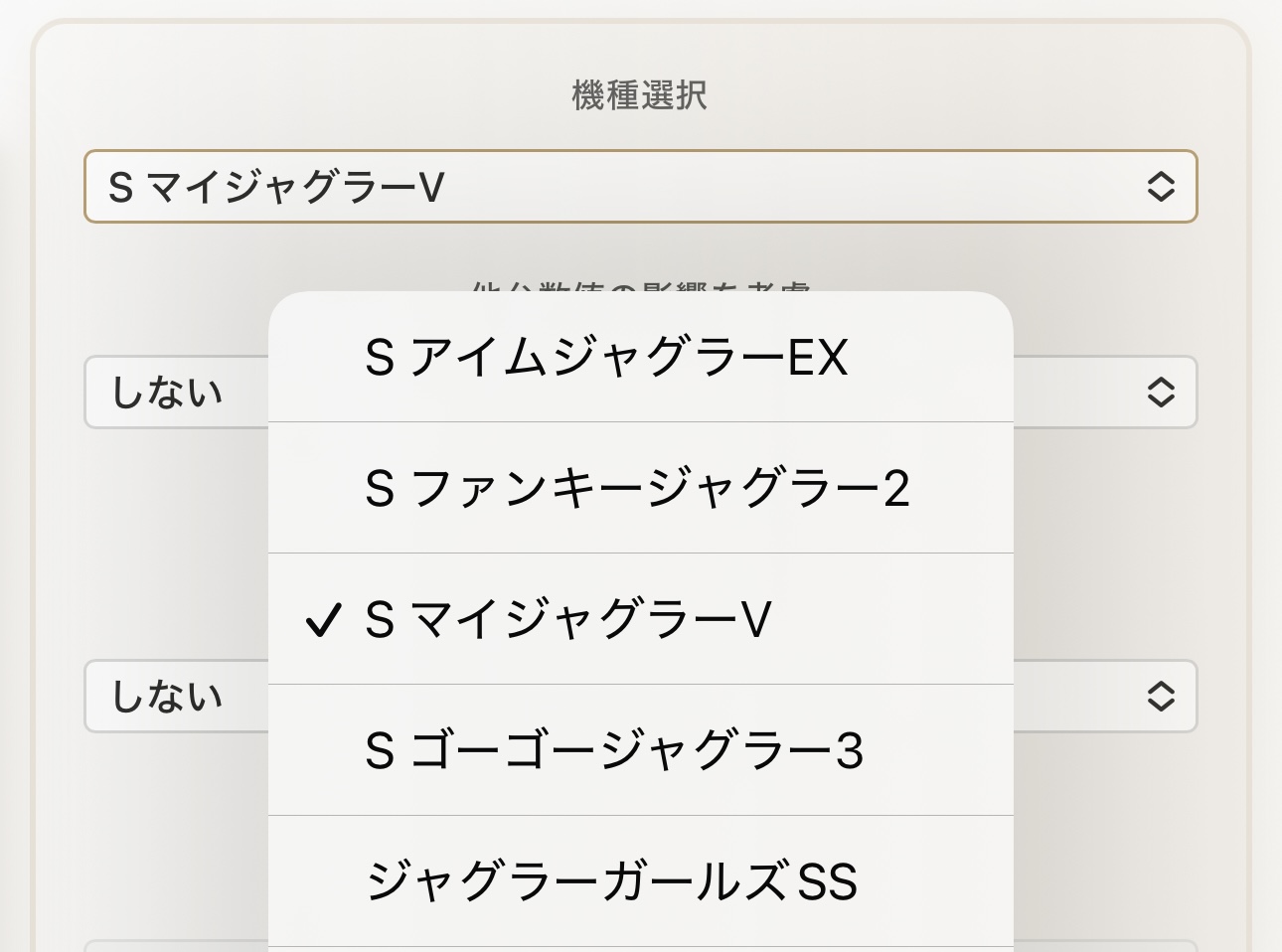 - あり:小役確率の逆算(ぶどう逆算・ベル逆算)を考慮する(開発中のため選択不可)