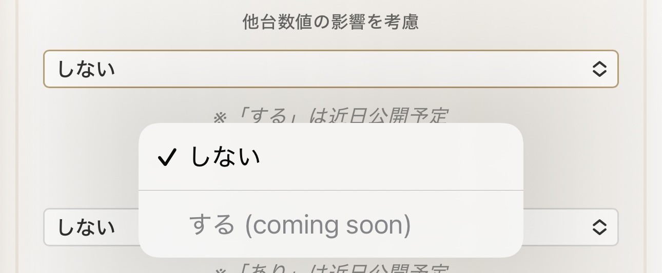 - する:他の台の数値の影響も考慮して判別(開発中のため選択不可)