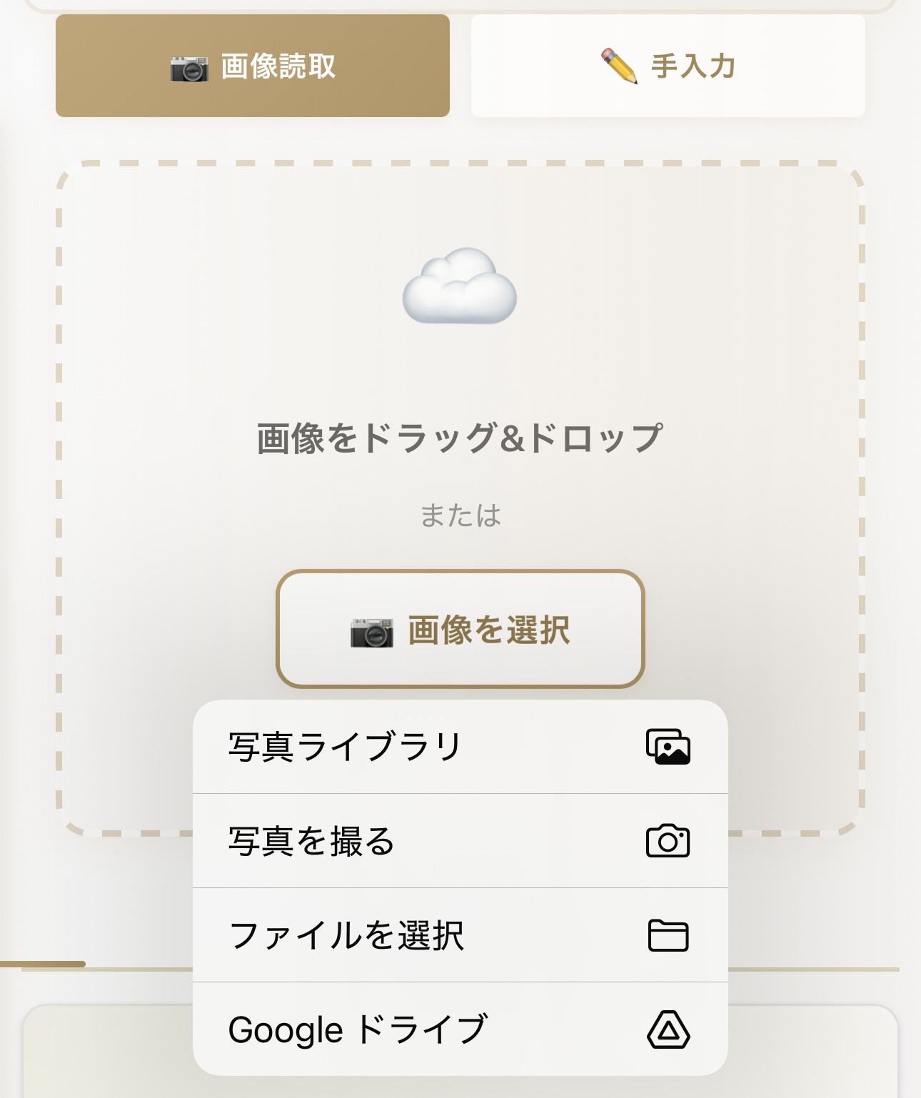 - 手入力機能は開発中のため選択不可
