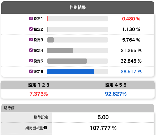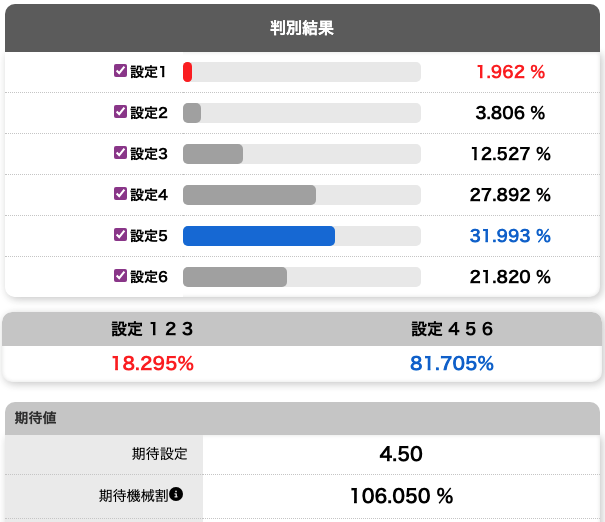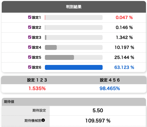 どの設定の可能性が高いかを表した数字だと考えてもらってOKです。