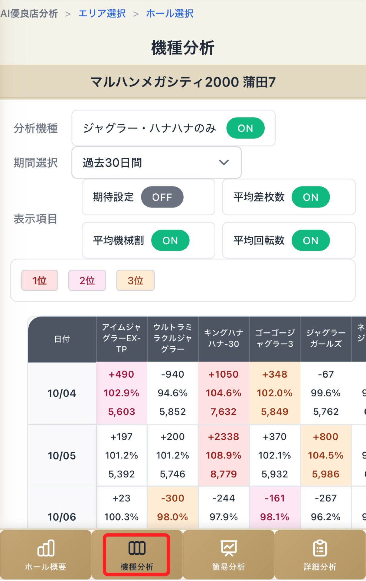 機種分析では各機種の日別データ分析ができます!