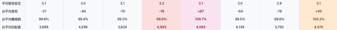 - 期待設定:該当日の全台平均の設定の期待値
